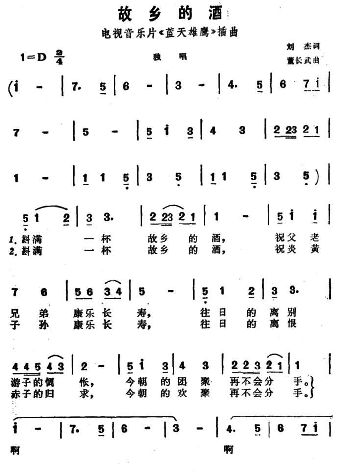 故乡的酒 电视音乐片 蓝天雄鹰 插曲