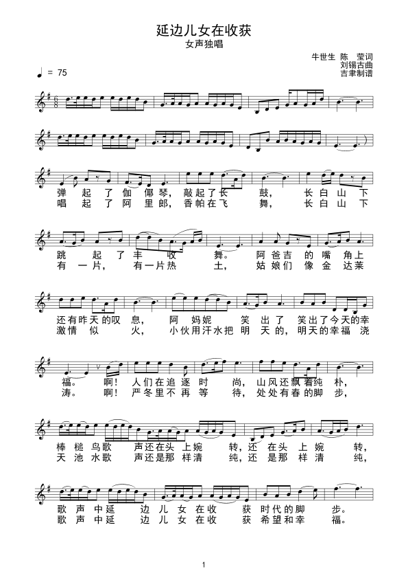 - [歌谱] 延边儿女在收获 牛世生 刘锡古曲
