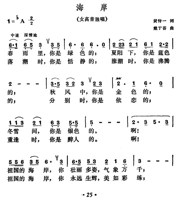 - [歌谱] 海岸