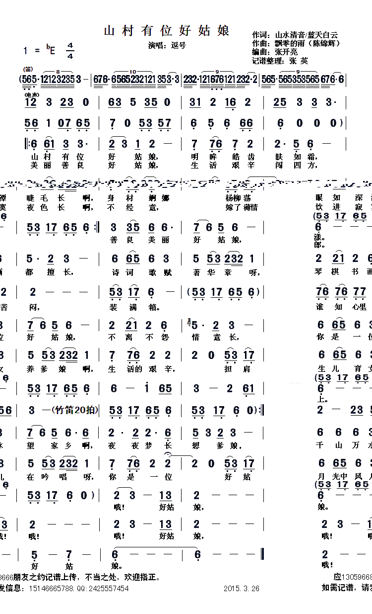 - [歌谱] 山村姑娘
