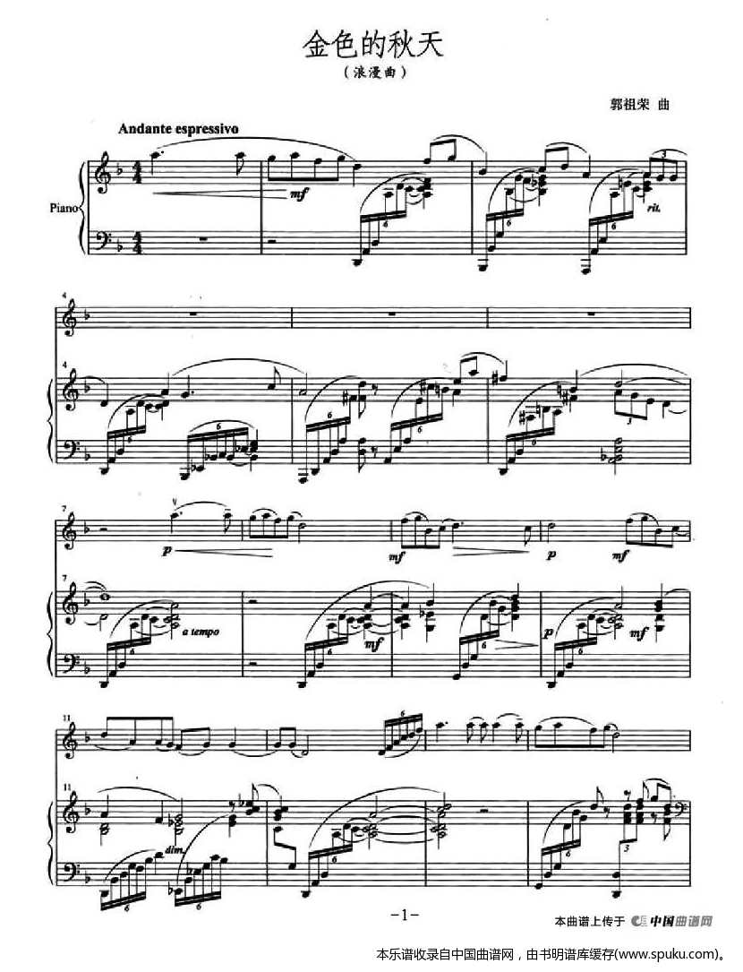 - [歌谱] 金色的秋天