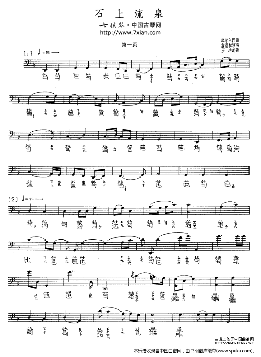 > 石上流泉 古琴谱