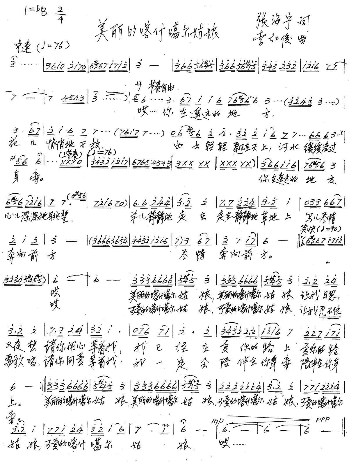 - [歌谱] 喀什噶尔姑娘