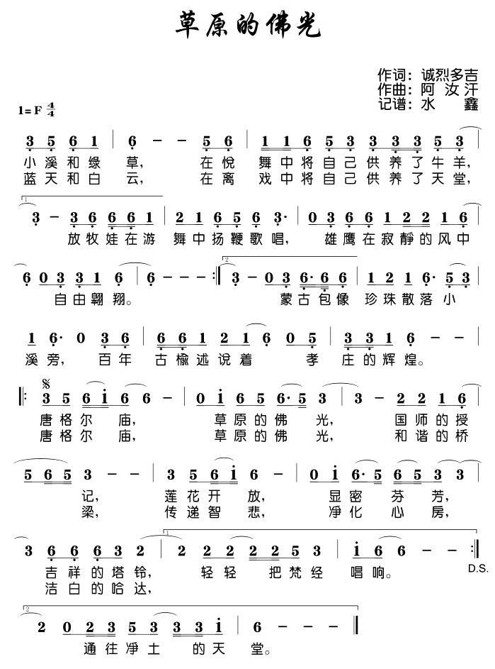 - [歌谱] 草原的佛光