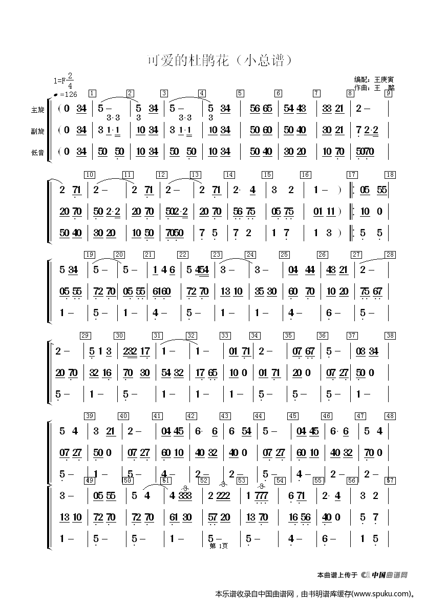 > 可爱的杜鹃花 小 乐器谱