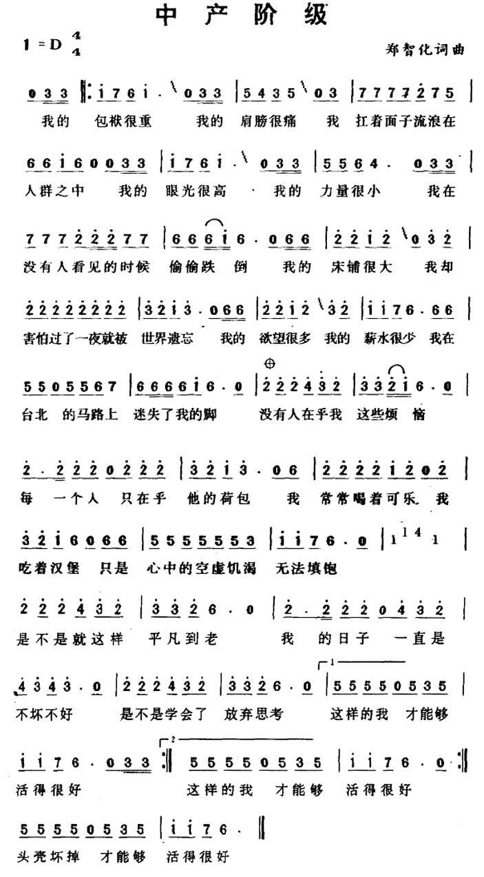 - [歌谱] 中产阶级