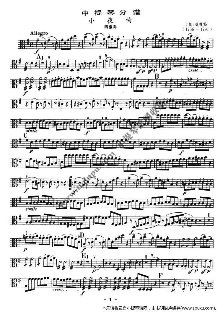 > 小夜曲 弦乐四重奏之中提琴