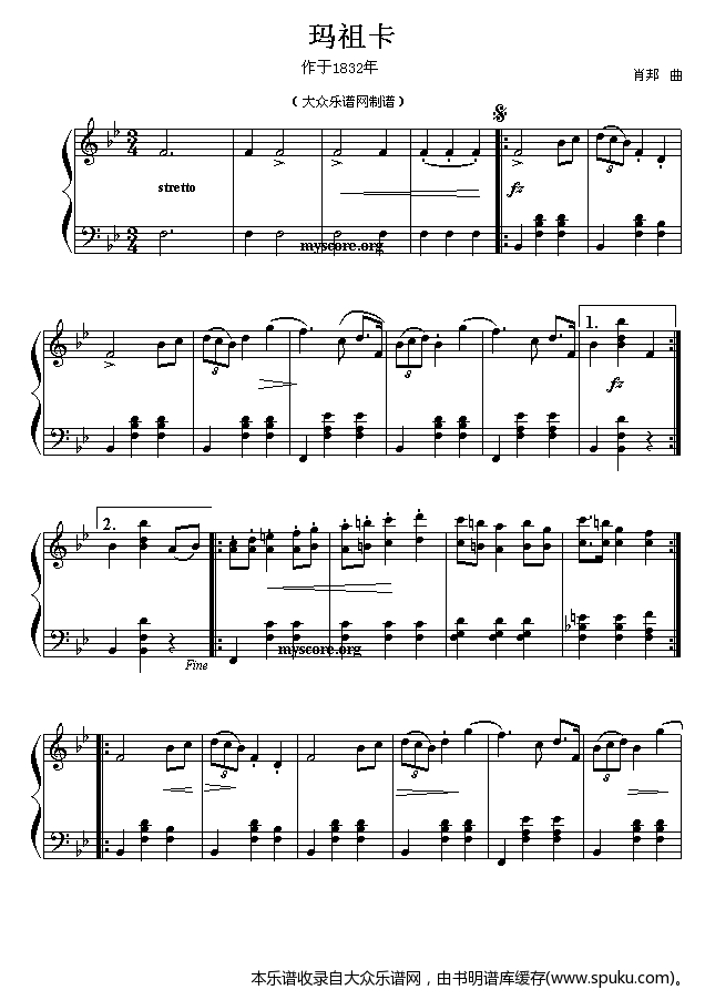 肖邦钢琴小品 玛祖卡 作于1832