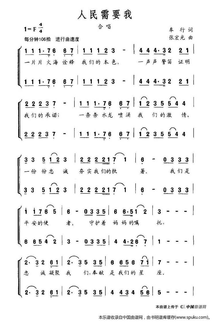 人民的武装 电影 战斗里成长 主题歌 合唱谱