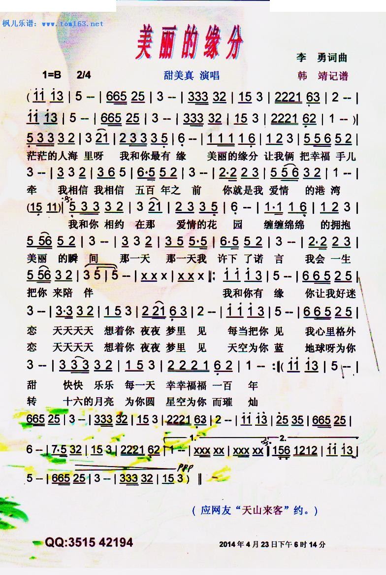 - [歌谱] 美丽的缘分 网络 广场舞 彩谱