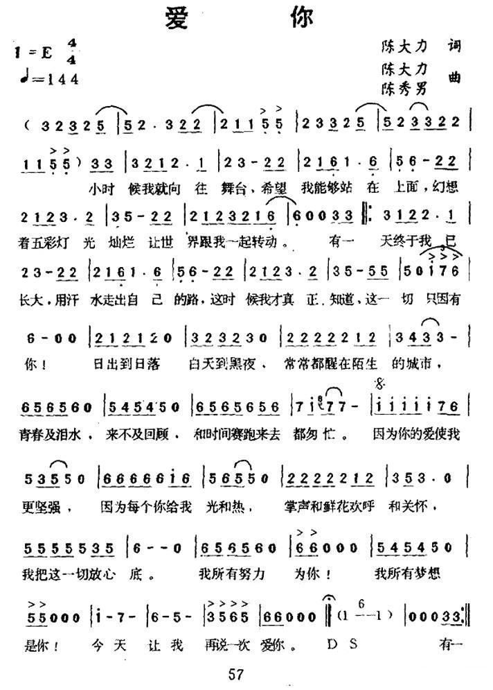 - [歌谱] 网络热门歌曲 大海 陈大力