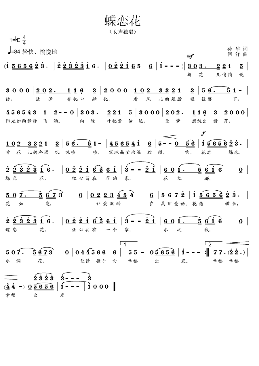 - [歌谱] 蝶恋花