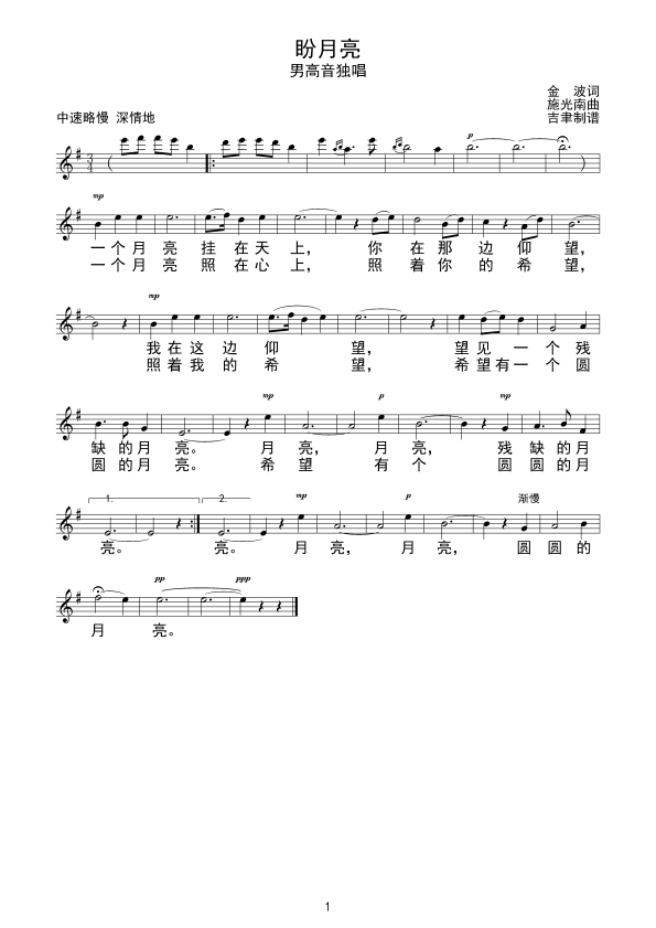 - [歌谱] 盼月亮 男高音独唱