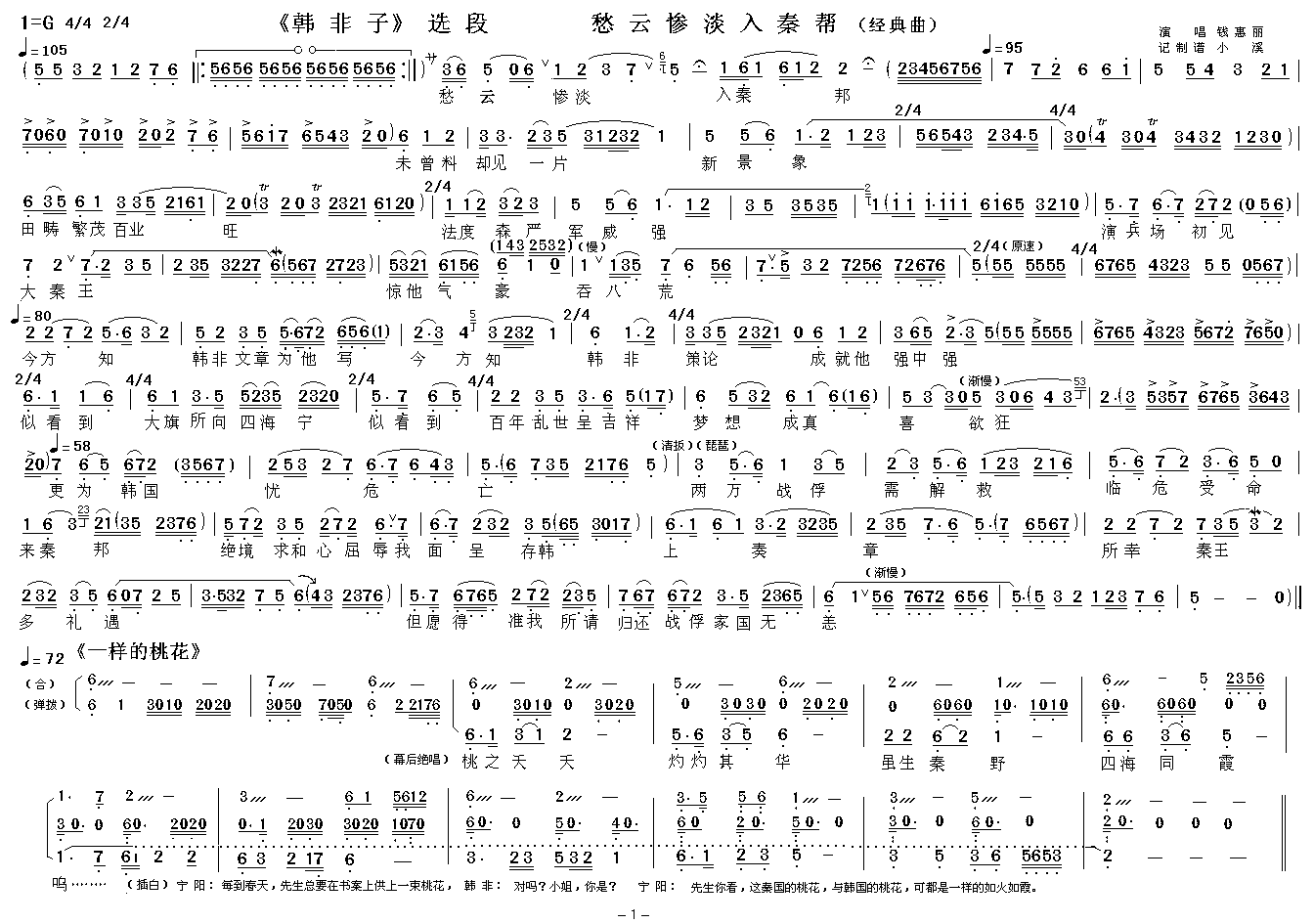 河北梆子 满江中波浪静月光惨淡 藏舟 选段 伴奏谱