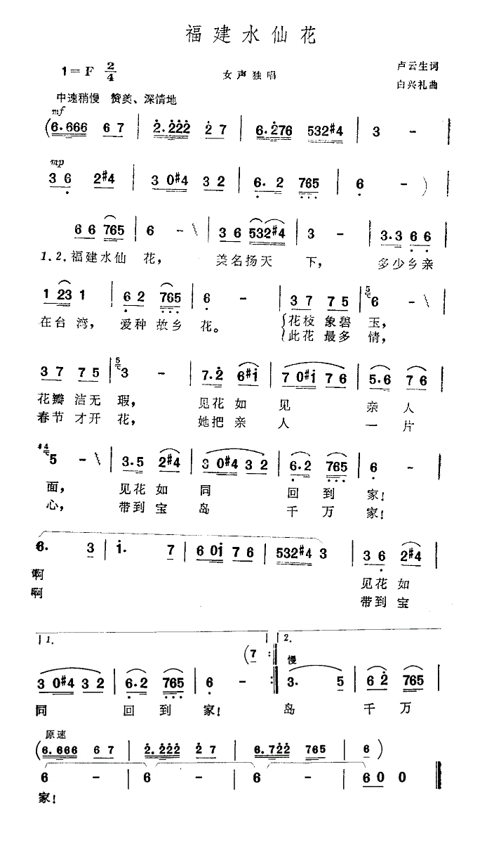 福建水仙花 女声独唱