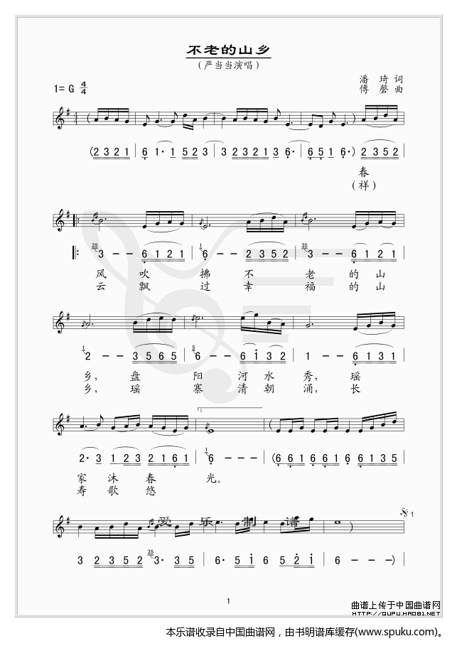- [歌谱] 不老的山乡
