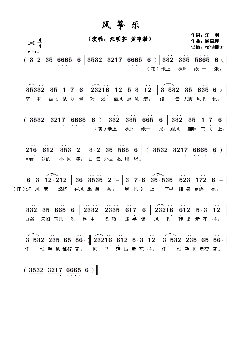 - [歌谱] 夺标