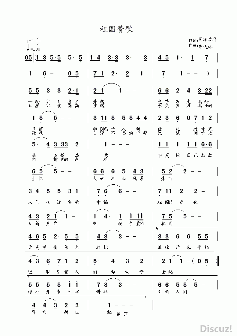 > 祖国赞歌 受宋老师之托上传 涂乐编曲