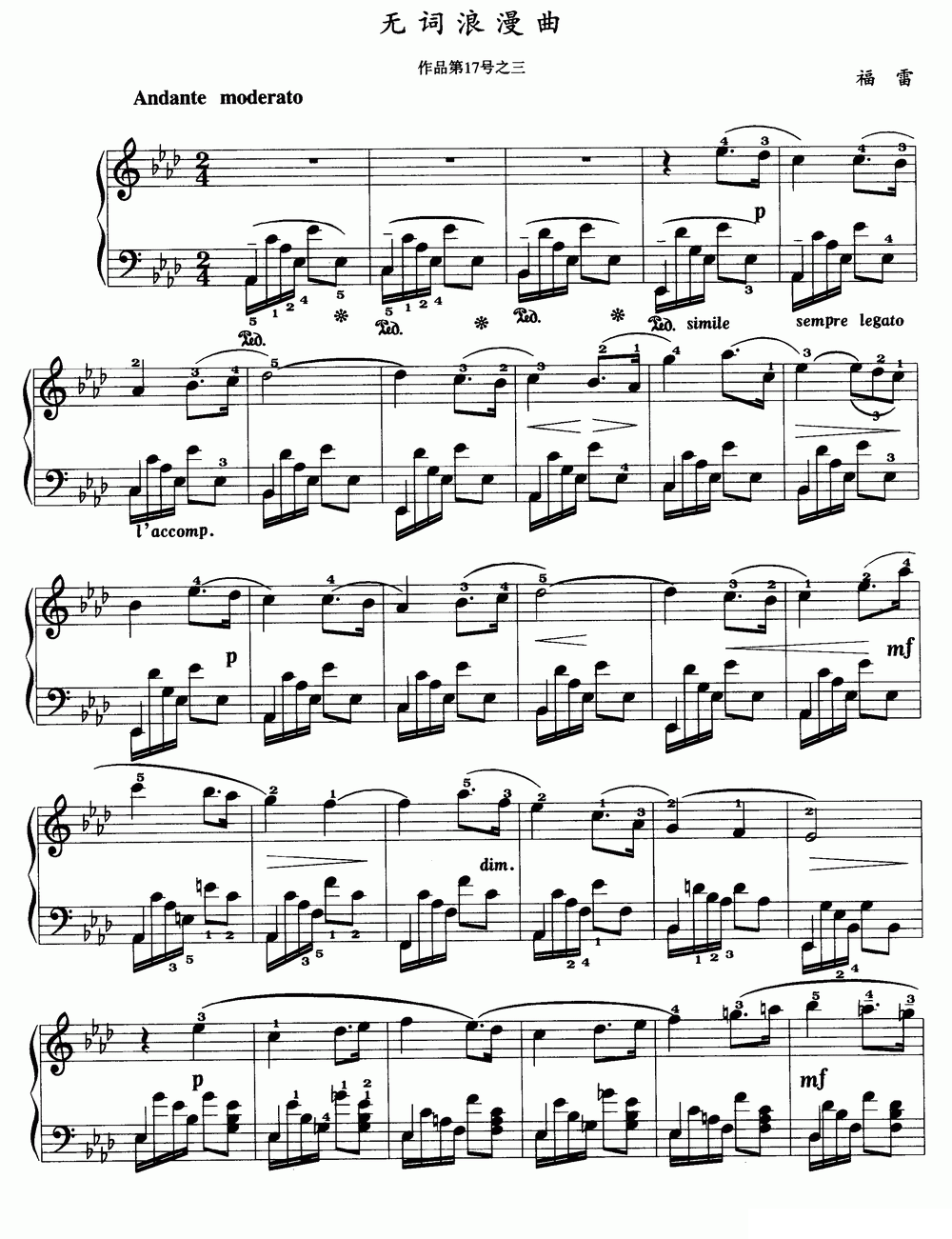 无词浪漫曲 福雷作品第17号之三