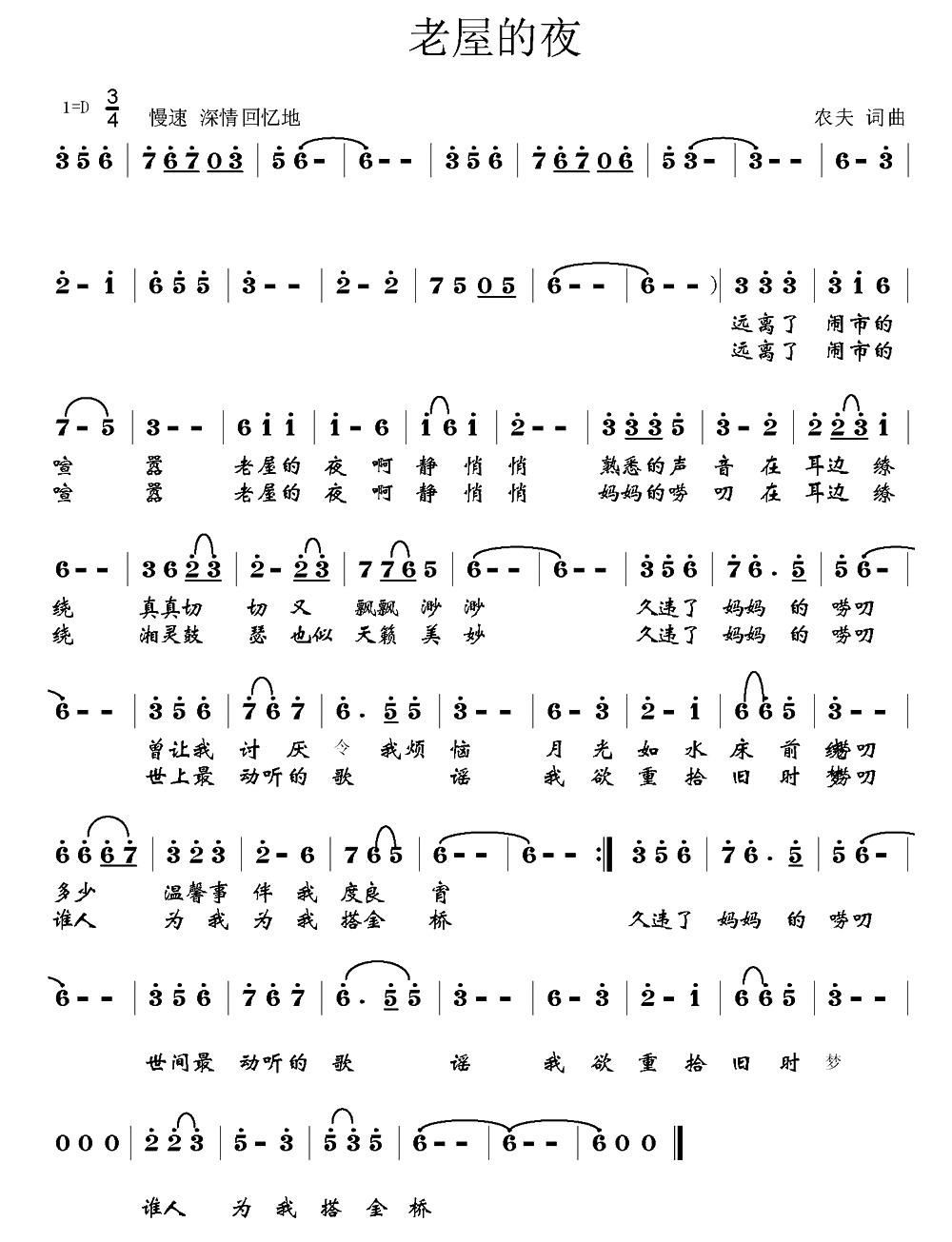 - [歌谱] 老屋的歌 老屋 插曲 彩谱