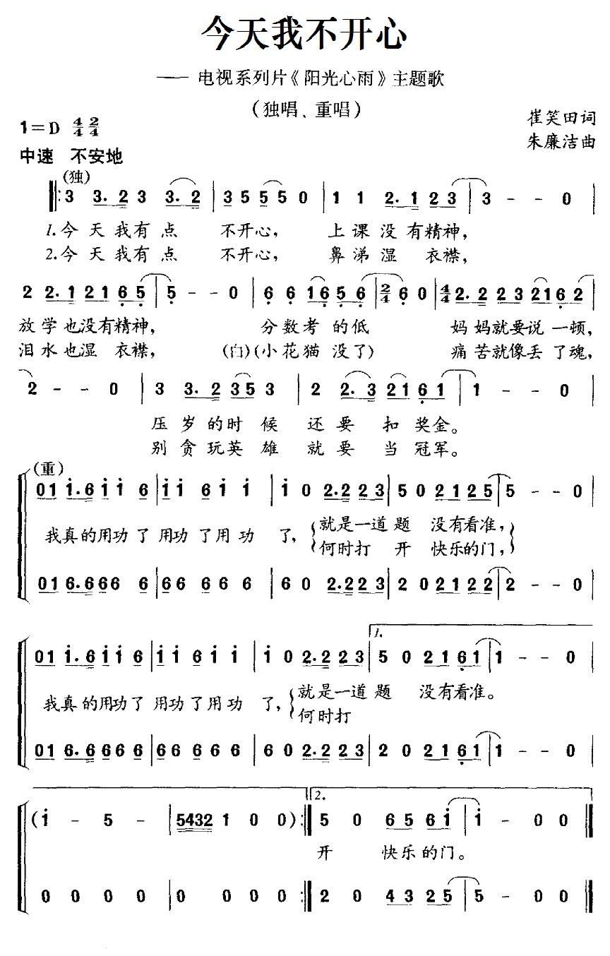 今天我不开心 电视系列片 阳光心雨 主题歌