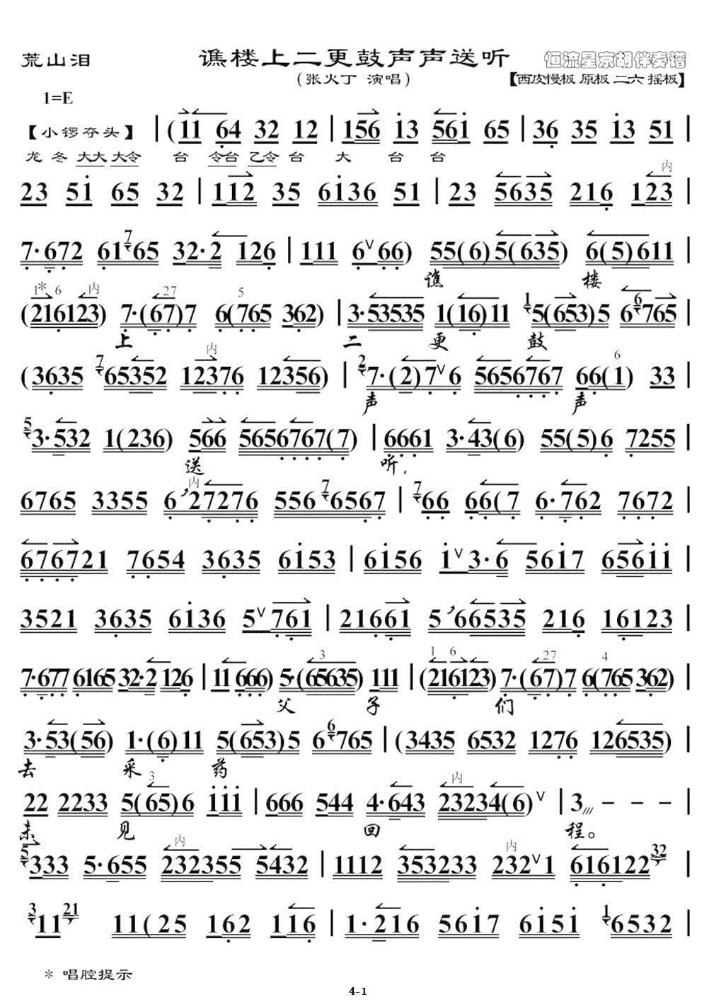 谯楼上二更鼓声声送听 荒山泪 选段 琴谱