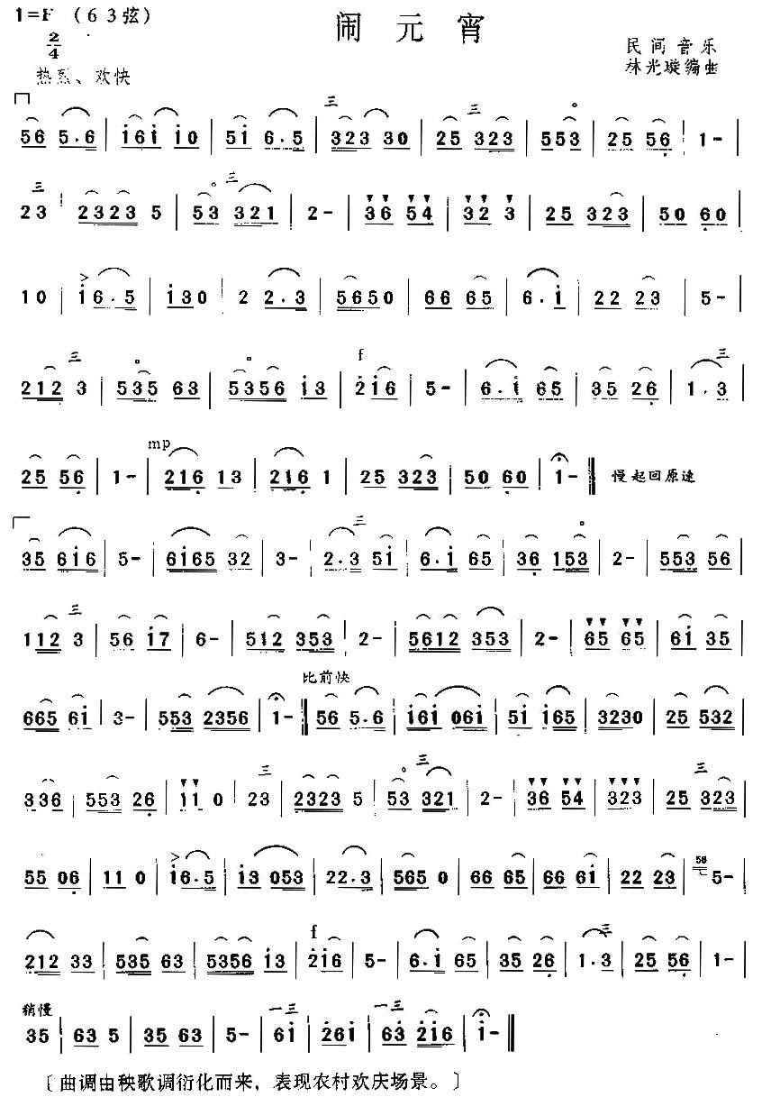 - [二胡谱,歌谱] 闹元宵