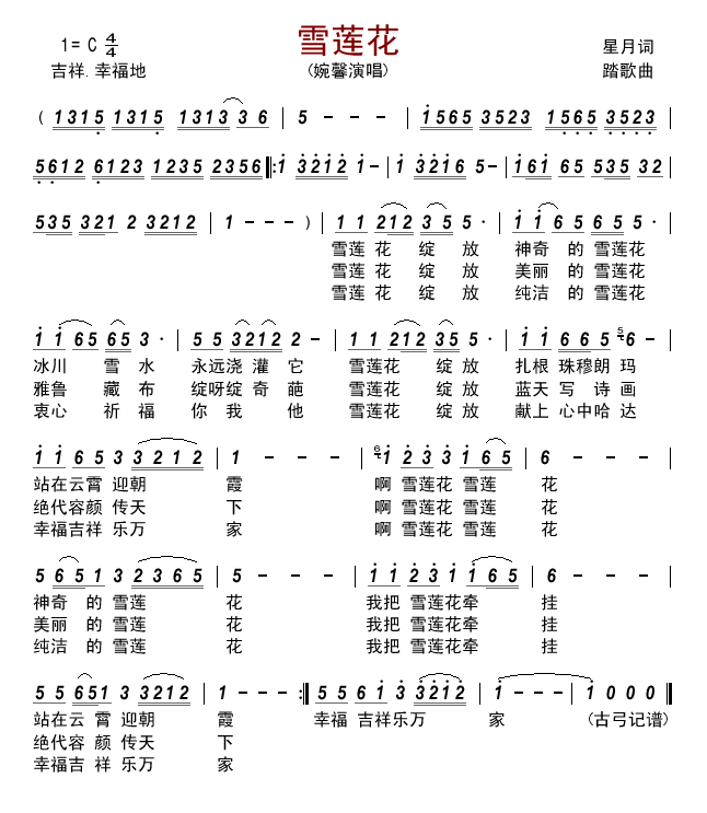 - [钢琴谱,歌谱] 雪莲花 钢伴谱
