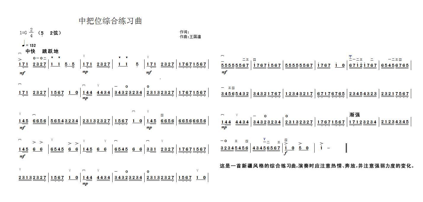 两手配合练习 中国二胡考级规定演奏曲 六级