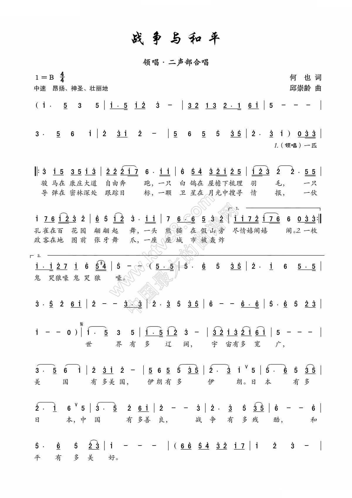 - [歌谱] 战争与和平