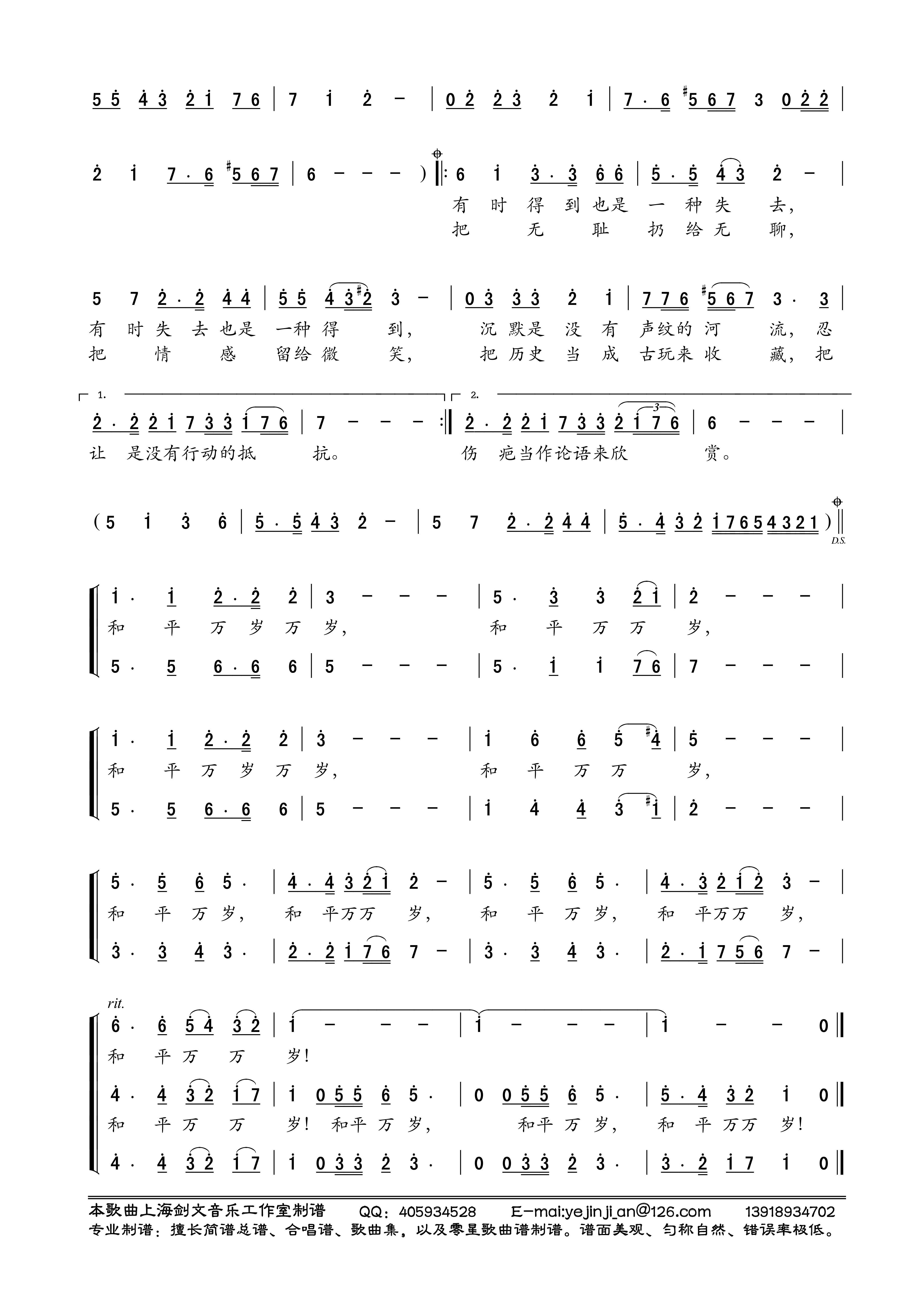 - [歌谱] 和平万岁