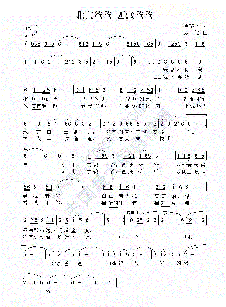 - [歌谱] 西藏爸爸