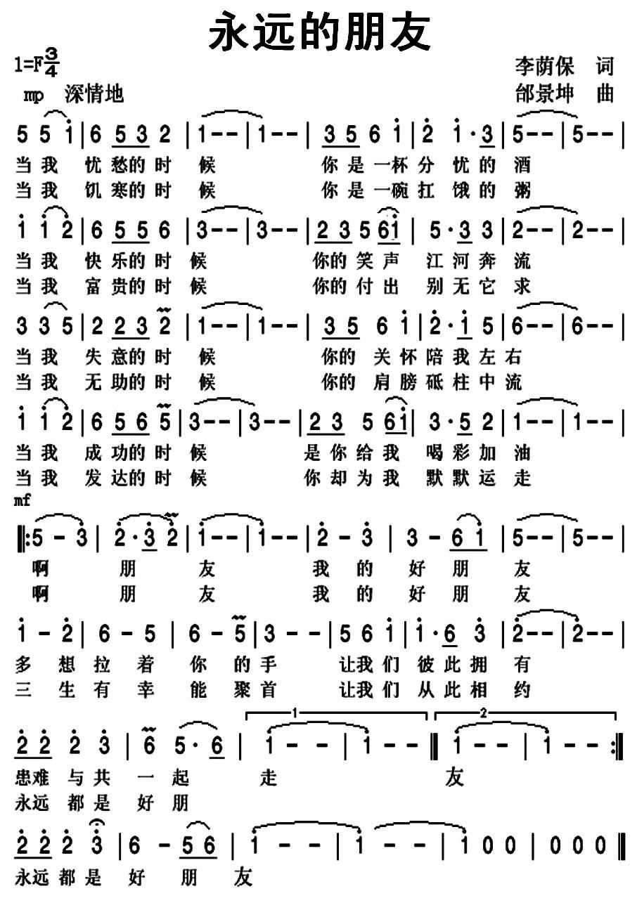 - [歌谱] 永远的朋友