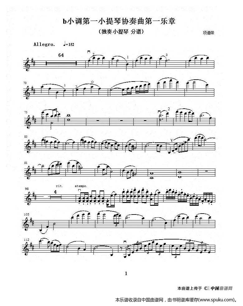 - [分谱,小提琴谱] b小调第一小提琴协奏曲第一乐章 独奏小提琴