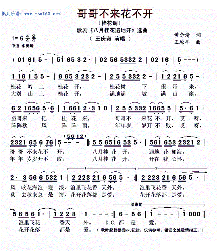哥哥不来花不开 歌剧 八月桂花遍地开 选曲 桂花调