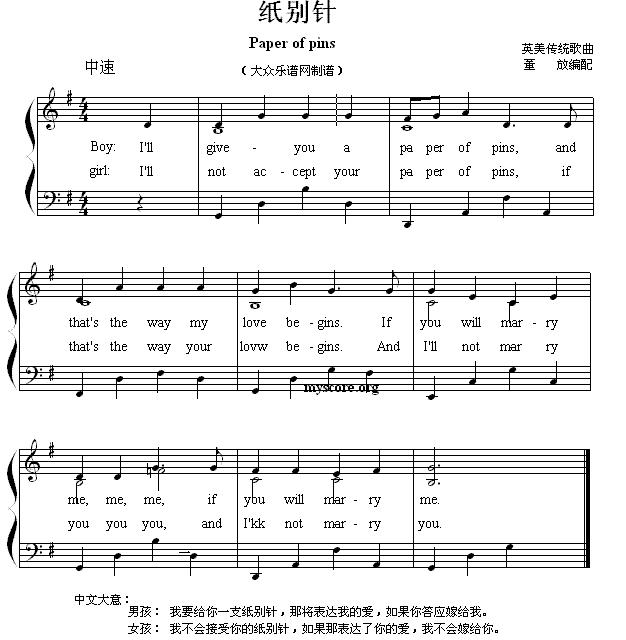 英文儿歌弹唱 Paper of pins 纸别针
