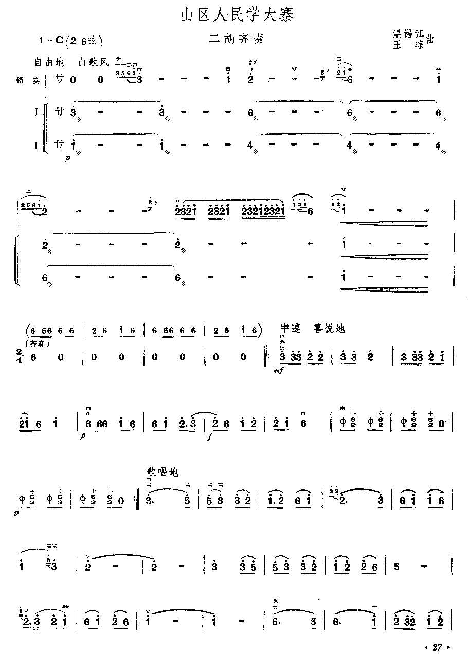 [二胡谱,胡琴谱]