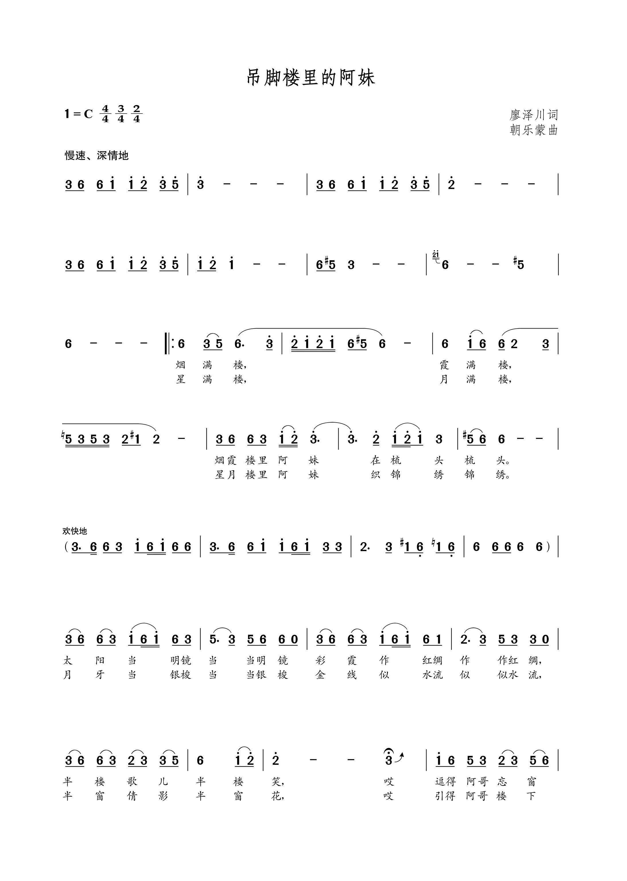 - [钢琴谱,歌谱] 吊脚楼里的阿妹