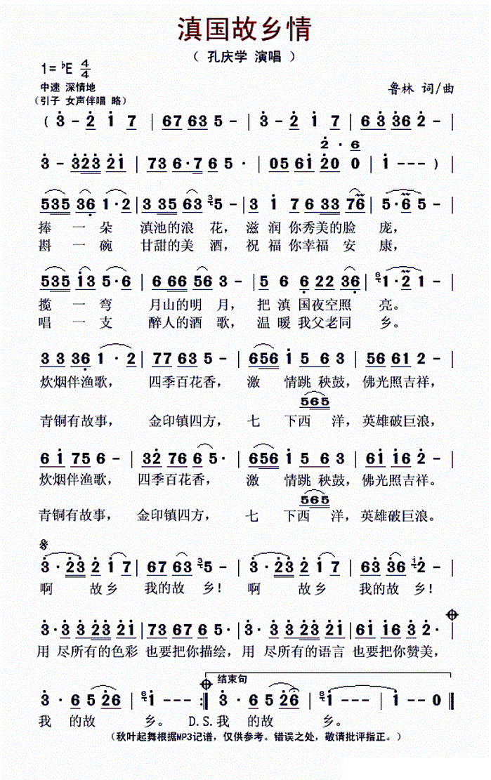 - [歌谱] 滇池圆舞曲