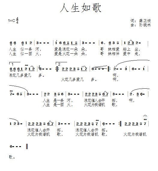 - [歌谱] 人生如歌 新