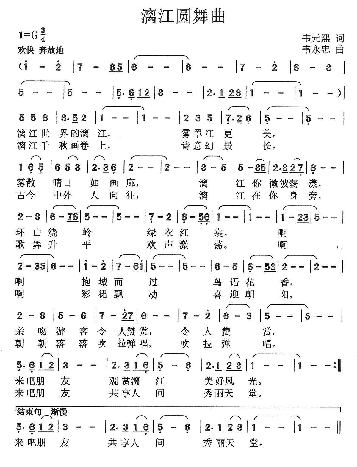 - [歌谱] 漓江春晓