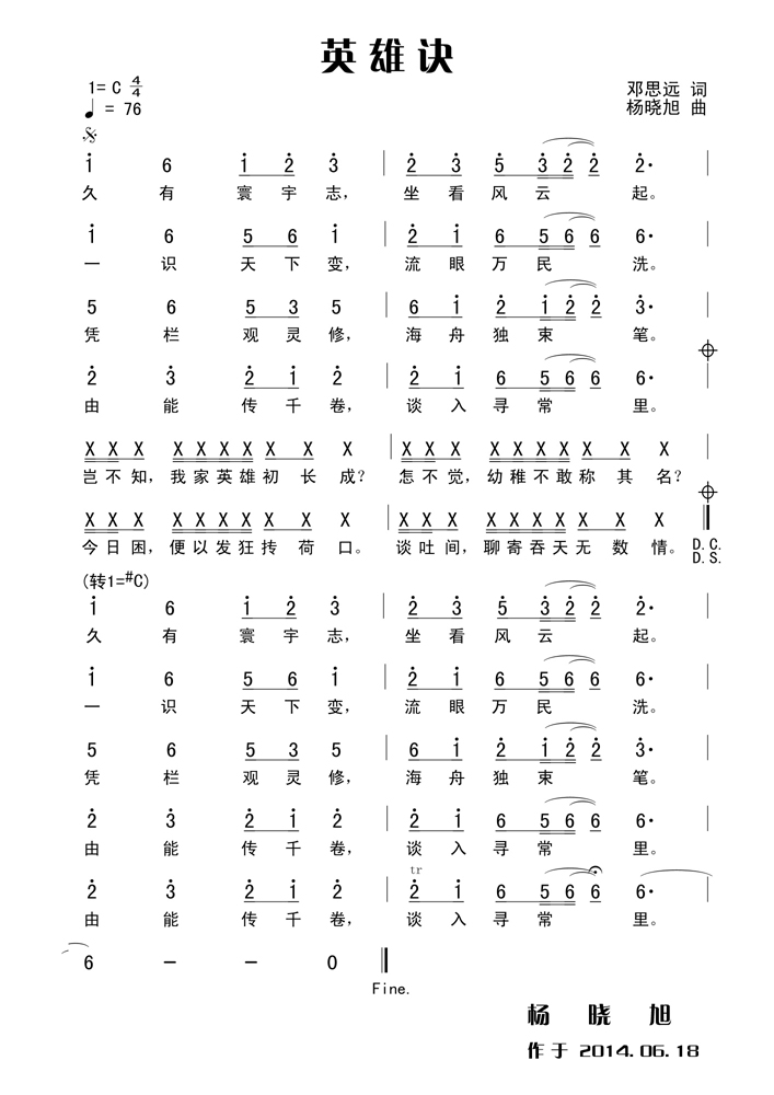 - [歌谱] 英雄