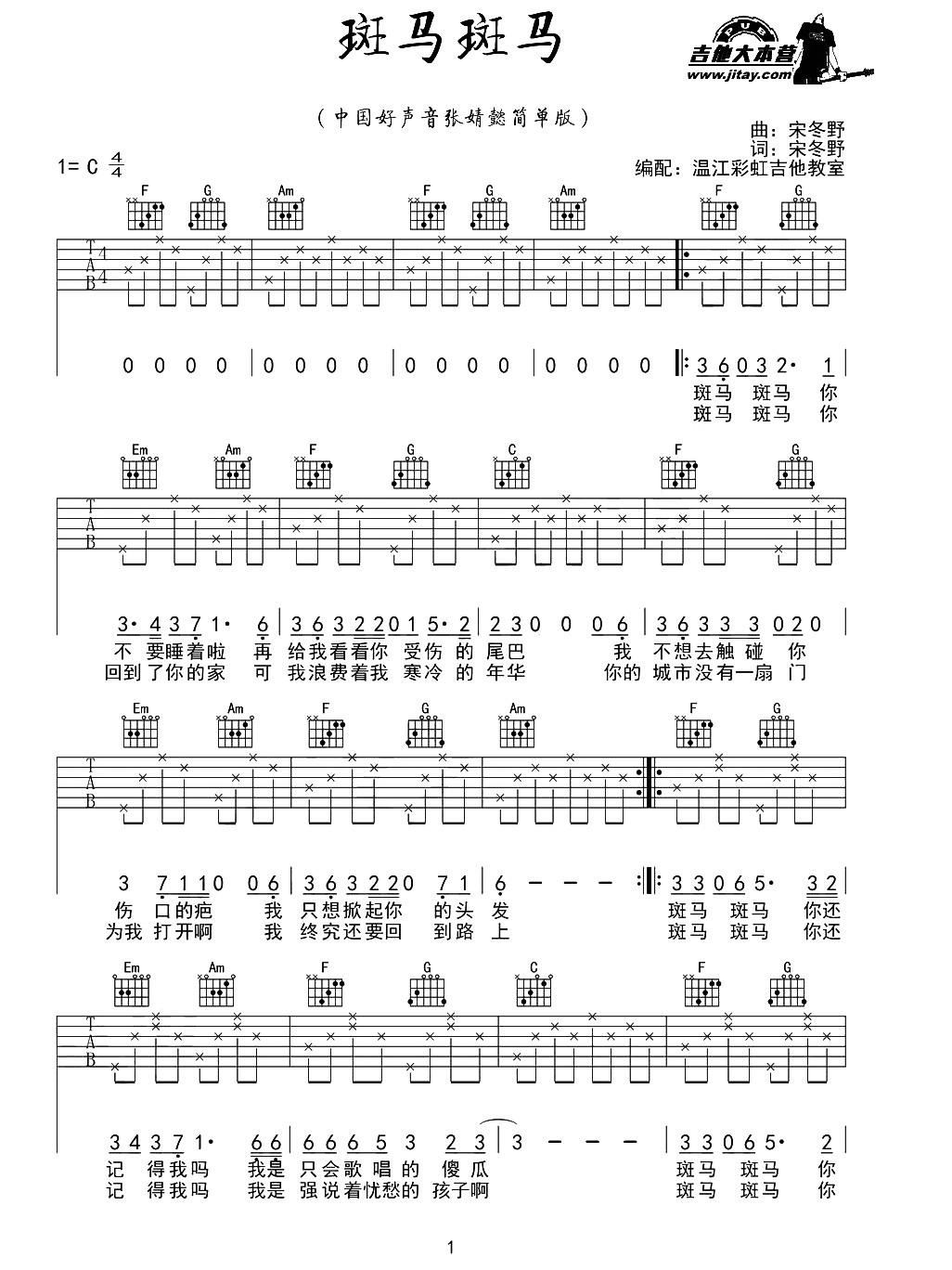 斑马斑马 中国好声音张婧懿简单版 by彩虹吉他教室