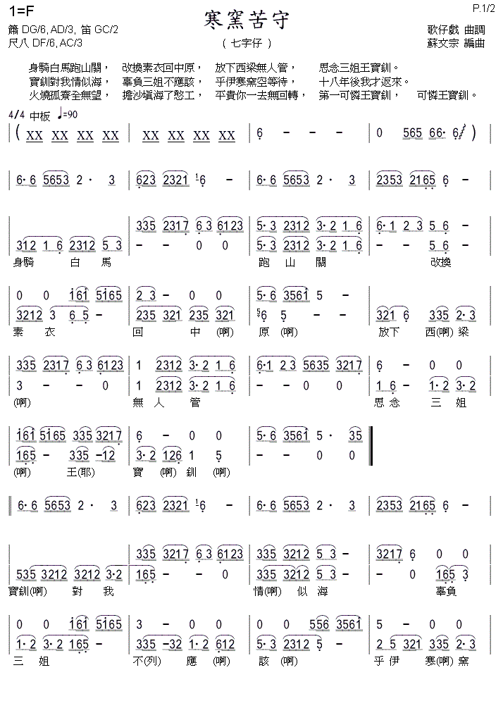 > 歌仔戏 寒窑苦守 七字仔 唱腔 箫