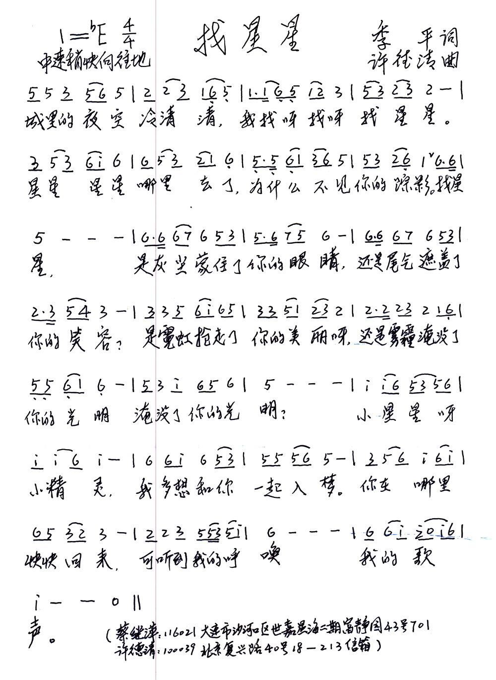 - [歌谱] 星星