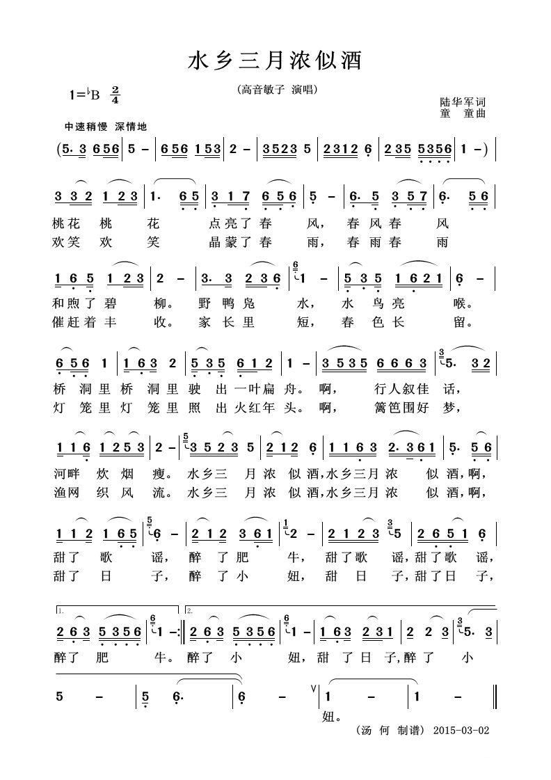 水乡三月浓似酒 独唱歌曲