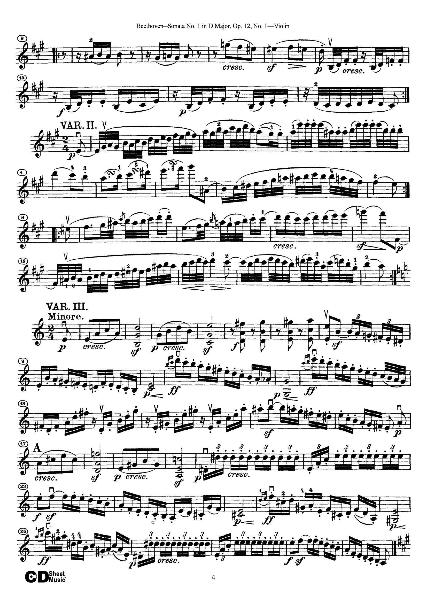 贝多芬第二号小提琴奏鸣曲A大调op 12