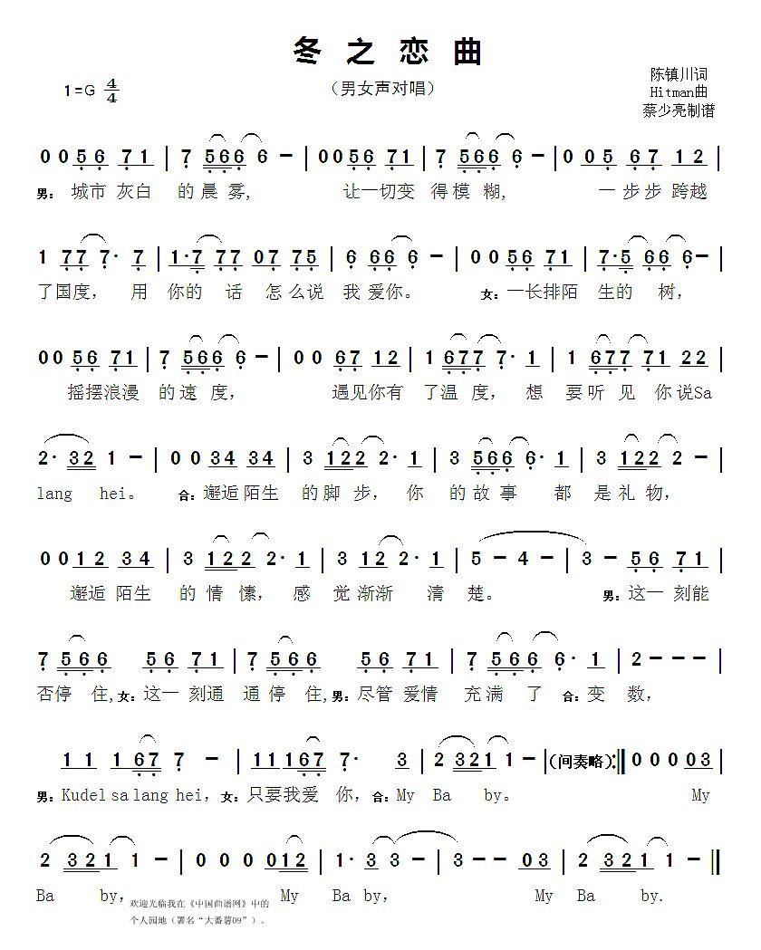 - [歌谱] 冬之恋