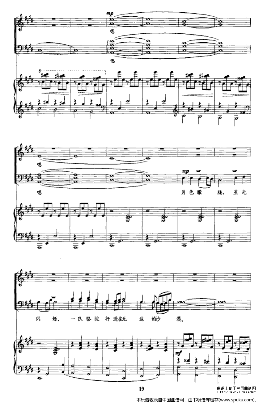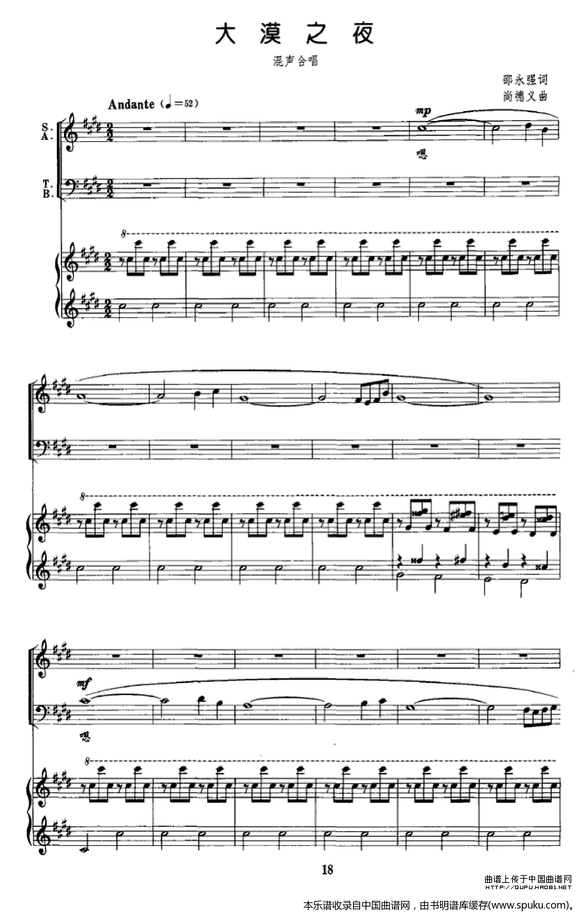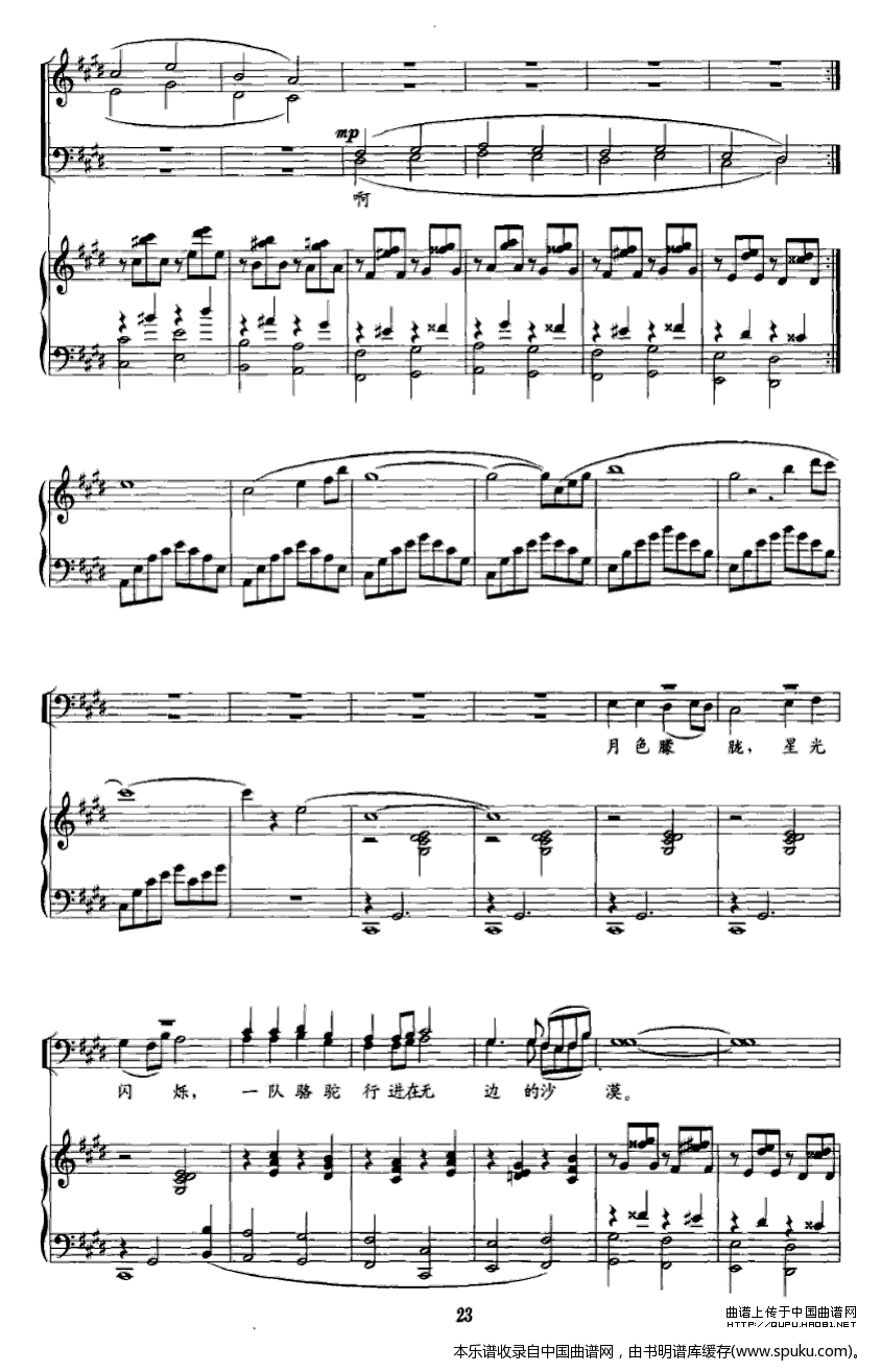 - [钢琴谱,歌谱] 大漠之夜 混声合唱 钢琴伴奏谱 1