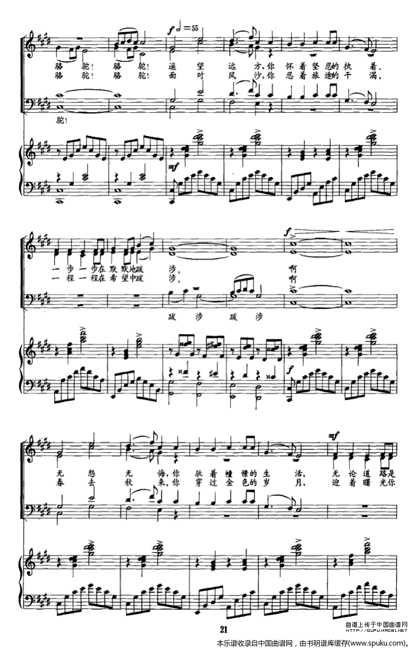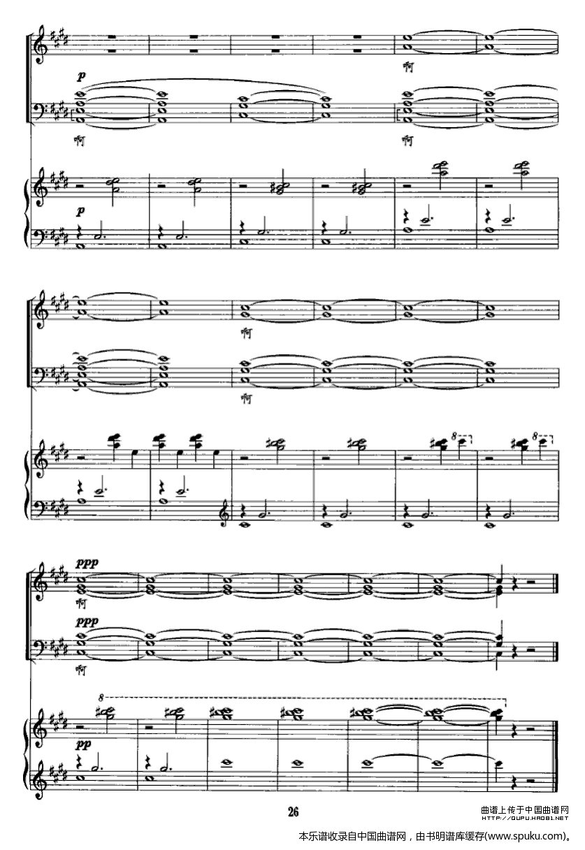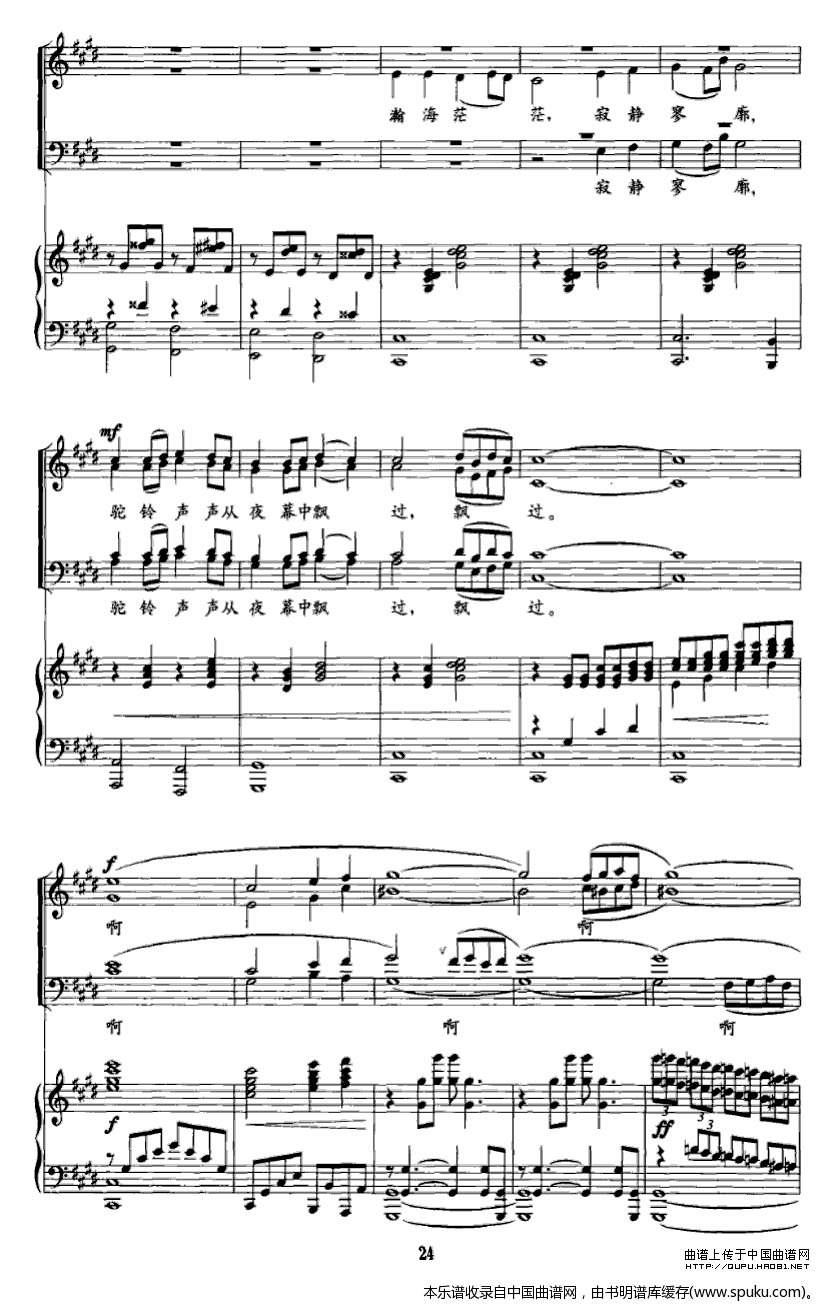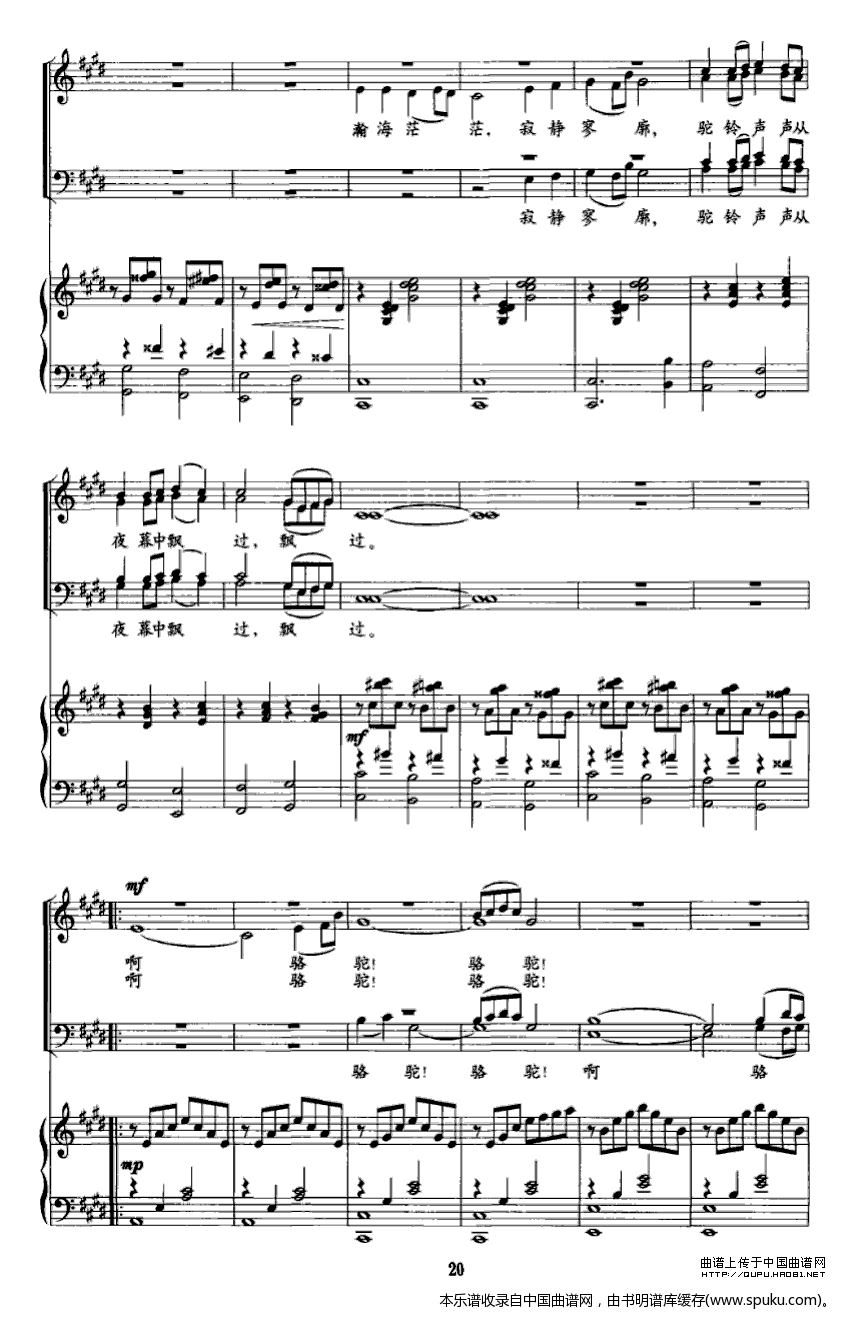 - [钢琴谱,歌谱] 大漠之夜 混声合唱 钢琴伴奏谱 1